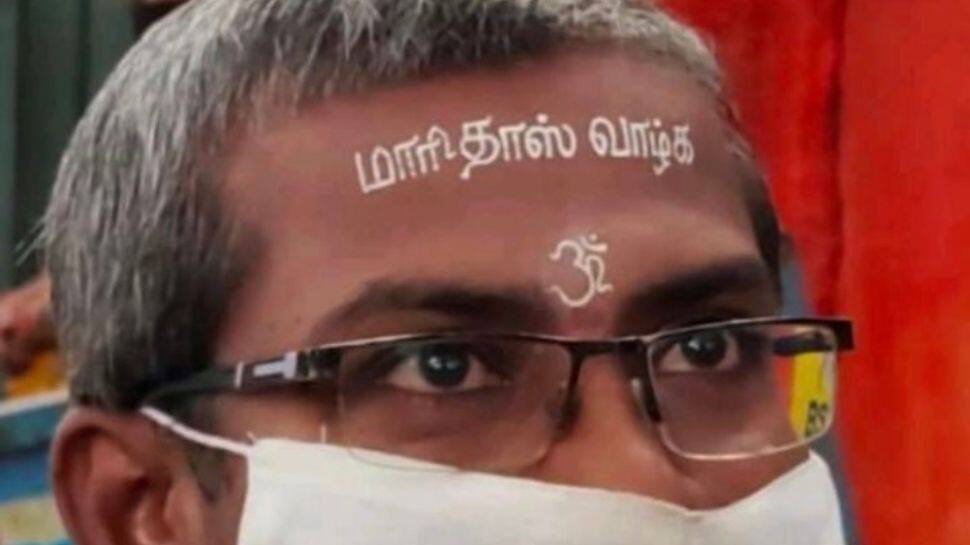 கோவை மாவட்ட ஆட்சியர் அலுவலகத்துக்கு "மாரிதாஸ் வாழ்க" என நெற்றியில் எழுதிக் கொண்டு வந்த நபரால் பரபரப்பு ஏற்பட்டது.