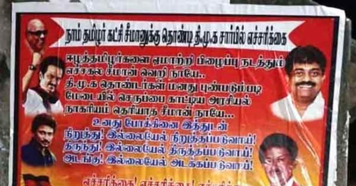 "ஈழத் தமிழர்களை ஏமாற்றி பிழைப்பு நடத்தும் சீமானே" அடங்கு இல்லையென்றால் அடக்கப் படுவாய் என எச்சரித்து ராமநாதபுரம் மாவட்டம் திருவாடனை தொண்டி பேரூர்