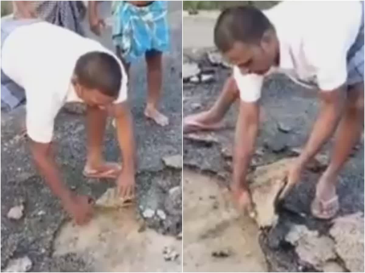 விழுப்புரம் மாவட்டம் வீடூர் அணையின் கரைப்பகுதியில் அமைக்கப்பட்டு வரும் தார் சாலை தரமற்ற வகையில் இருப்பதை அப்பகுதி மக்கள் வீடியோ எடுத்து