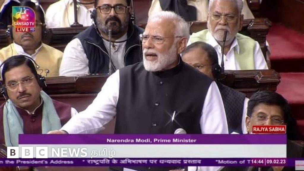 குடியரசு தலைவர் உரைக்கு நன்றி தெரிவிக்கும் தீர்மானத்திற்கு மாநிலங்களவையில் பிரதமர் மோதி பதில் அளிக்கையில், எதிர்க்கட்சி எம். பி. க்கள் ஒன்றாக