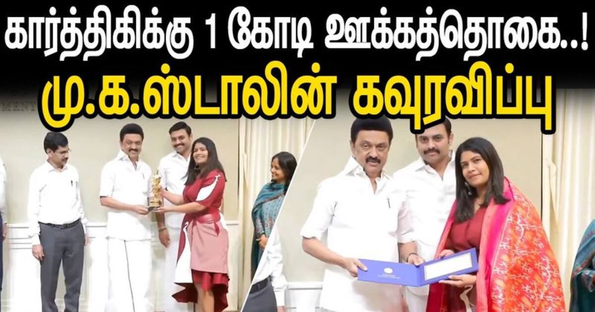 "The Elephant Whisperers" இயக்குனருக்கு ரூ1 கோடி ஊக்கத்தொகை..! மு.க.ஸ்டாலின் கவுரவிப்பு ஆஸ்கர் விருது வென்ற ‘The Elephant Whisperers’ படத்தின் இயக்குநர் கார்த்திகிக்கு ரூ.1 கோடி