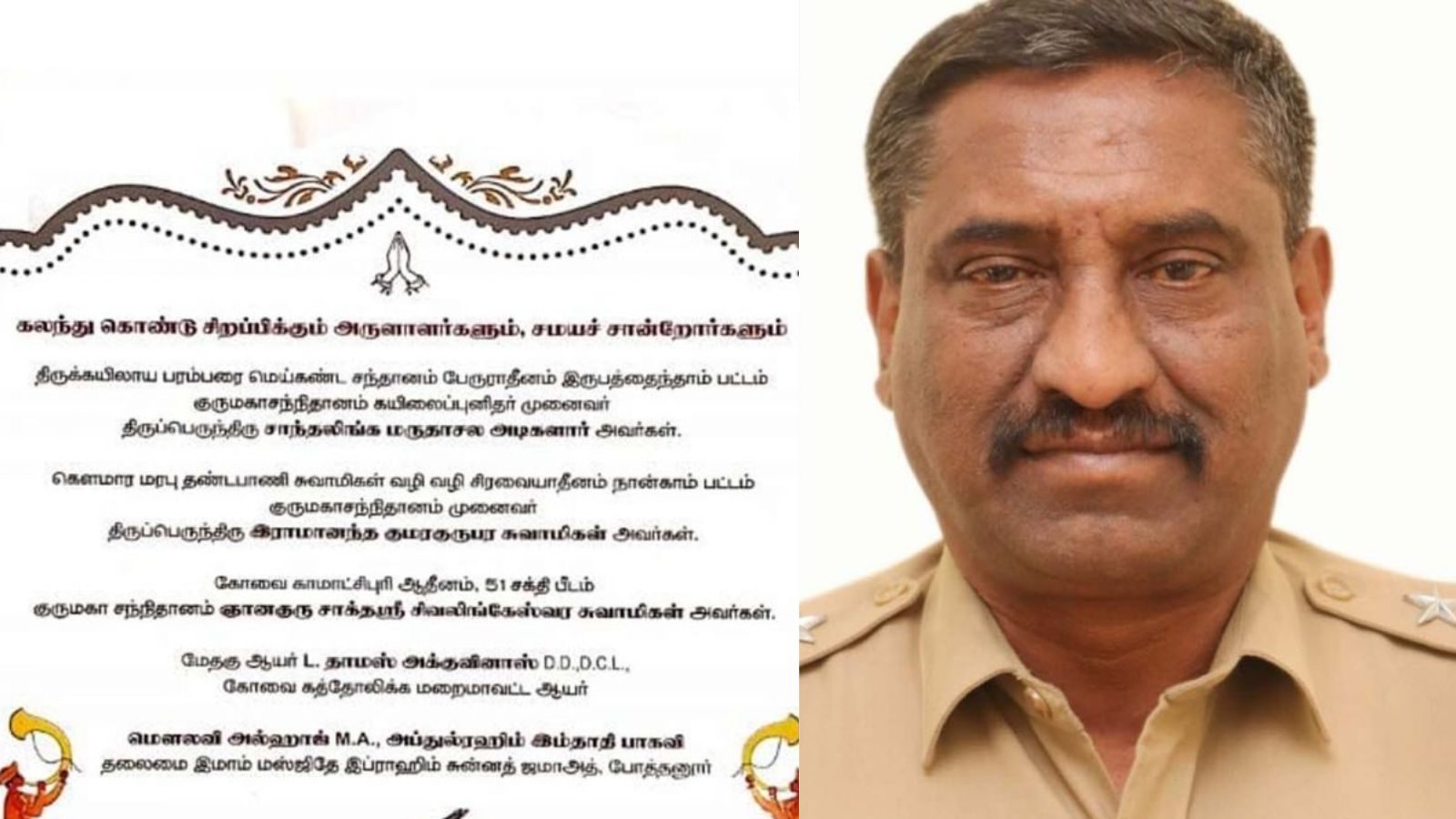Coimbatore DSP daughter invitation | கோவையில் 3 மதங்களைச் சேர்ந்த குருமார்கள் முன்னிலையில் தனது மகளுக்கு திருமணம் செய்து வைக்கும் காவல்துறை துணை கண்காணிப்பாளர்.