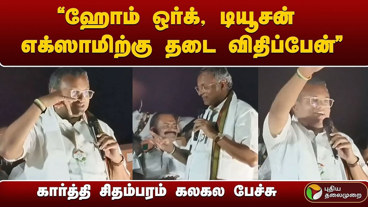தமிழ்நாடு"ஹோம் ஒர்க், டியூசன் எக்ஸாமிற்கு தடை விதிப்பேன்" - கார்த்தி சிதம்பரம் கலகல பேச்சு"ஹோம் ஒர்க், டியூசன் எக்ஸாமிற்கு தடை விதிப்பேன்" - கார்த்தி