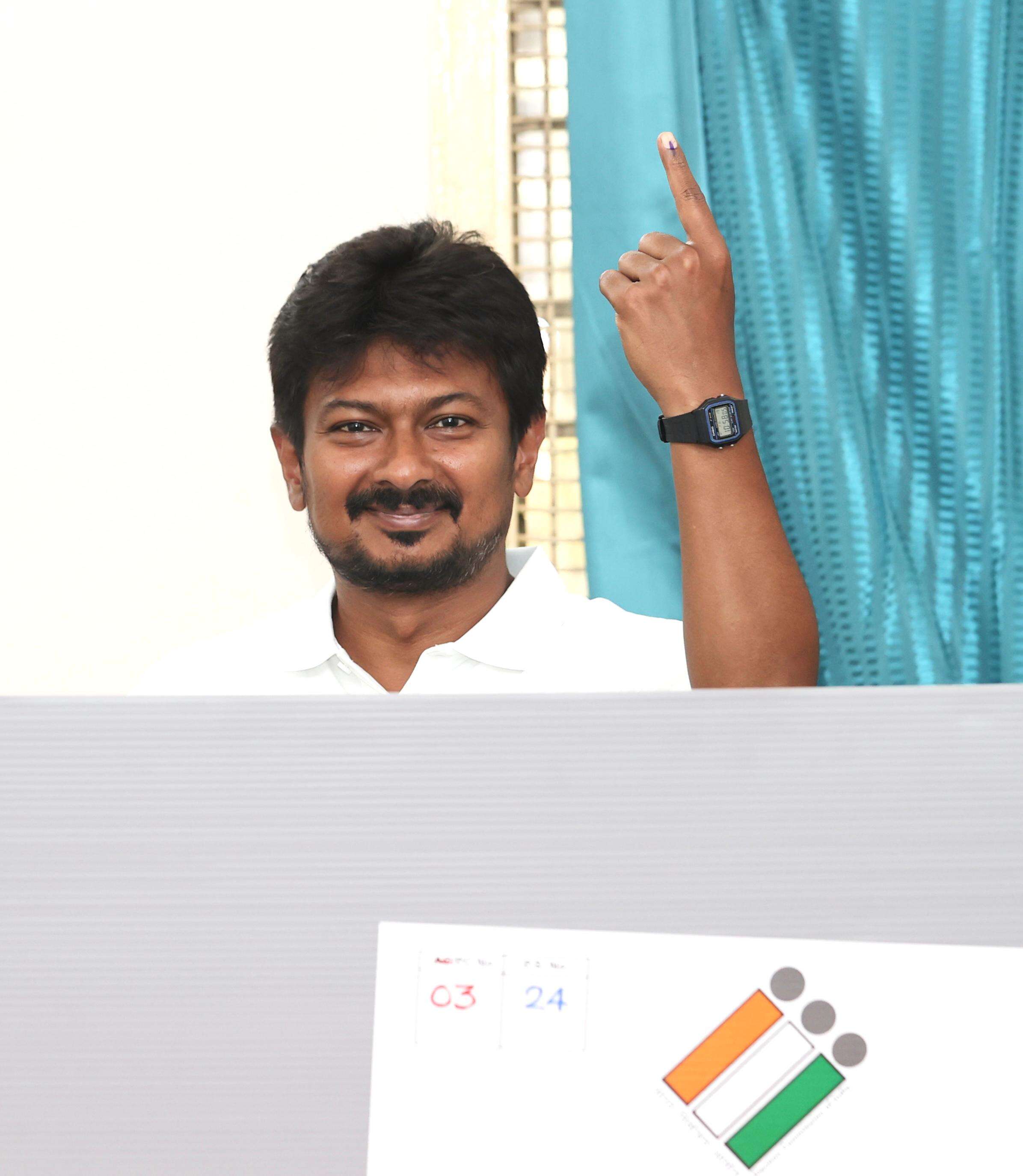 ஜனநாயக கடமையை ஆற்றினார் அமைச்சர் உதயநிதி ஸ்டாலின்