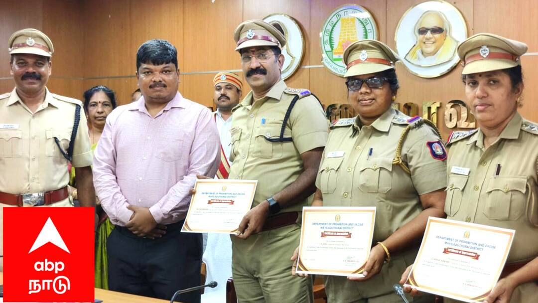 மயிலாடுதுறை மாவட்டத்தில் கடந்த சில மாதங்களாக போதைப் பொருட்கள் தொடர்பான குற்றங்களை பெருமளவு குறைந்ததை அடுத்து மதுவிலக்கு அமலாக்க பிரிவு டிஎஸ்பி