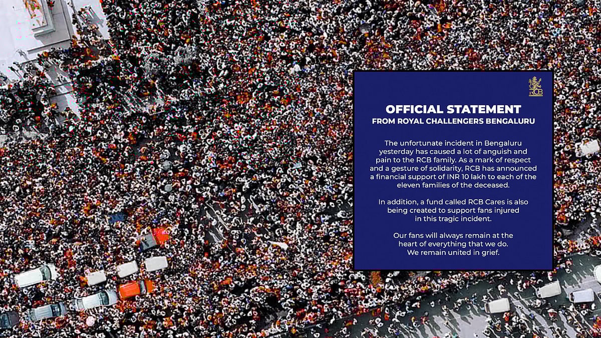 RCB அணி முதல்முறையாக ஐபிஎல் கோப்பையை வென்றதையடுத்து, பெங்களூருவில் மிகப் பெரிய கொண்டாட்ட நிகழ்வு நடத்தப்பட்டது. இதில் பங்கெடுக்க லட்சக்கணக்கில்
