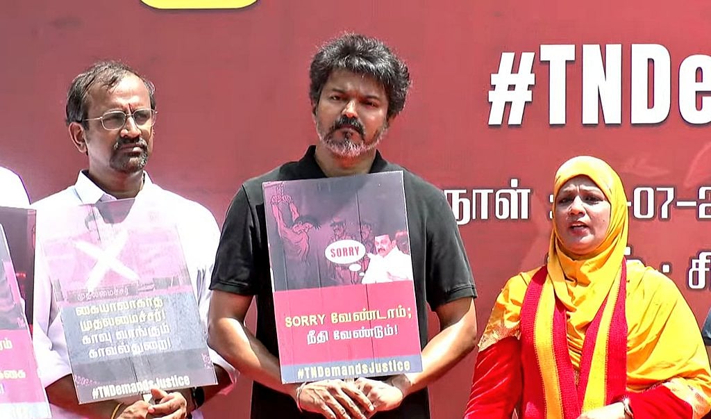 சிவகங்கையில் காவல்துறை சித்ரவதையால் உயிரிழந்த அஜித் குமாரின் உயிரிழப்புக்கு நீதிகேட்டு தமிழக வெற்றிக் கழகம் சார்பில், சென்னை, சிவானந்தம்