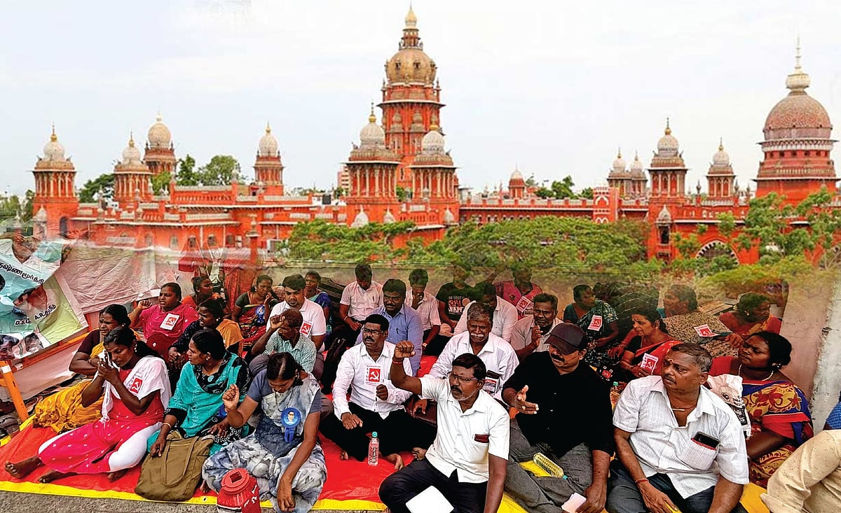 சென்னை ரிப்பன் மாளிகை முன் தொடர் போராட்டத்தில் ஈடுபட்டு வரும் தூய்மைப் பணியாளர்களை அப்புறப்படுத்த தமிழக அரசுக்கு சென்னை உயர் நீதிமன்றம்