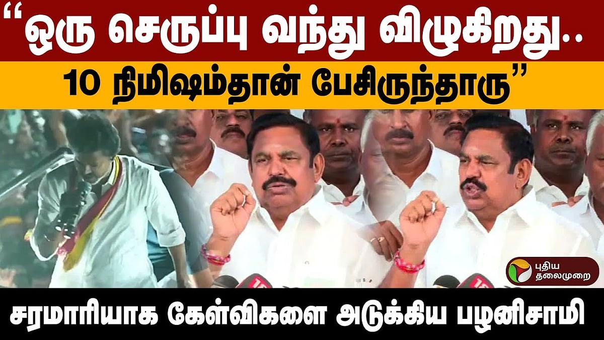 தமிழ்நாடு"ஒரு செருப்பு வந்து விழுகிறது.. 10 நிமிஷம்தான் பேசிருந்தாரு " சரமாரியாக கேள்விகளை அடுக்கிய பழனிசாமி!கரூர் துயர சம்பவம் தொடர்பாக