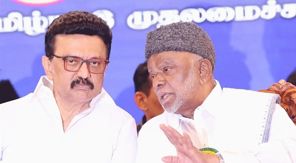 சென்னை அண்ணா அறிவாலயத்தில் திமுக தொகுதி பங்கீட்டுக் குழுவுடனான பேச்சுவார்த்தைக்குப் பின் முஸ்லிம் லீக் தலைவர் காதர் மொகிதீன் செய்தியாளர்களைச்