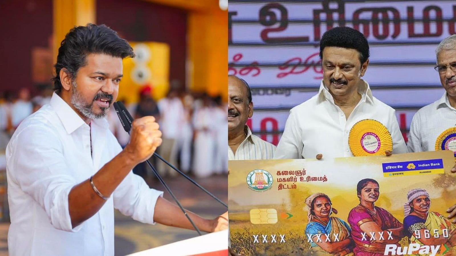 கோடைகாலச் சிறப்புத் தொகை ரூ.2000 எனத் திடீரென அறிவித்தது எப்படி?" என்று மாத உரிமைத் தொகை ரூ.5,000 அறிவிக்கப்பட்டது குறித்து தவெக தலைவர் விஜய்