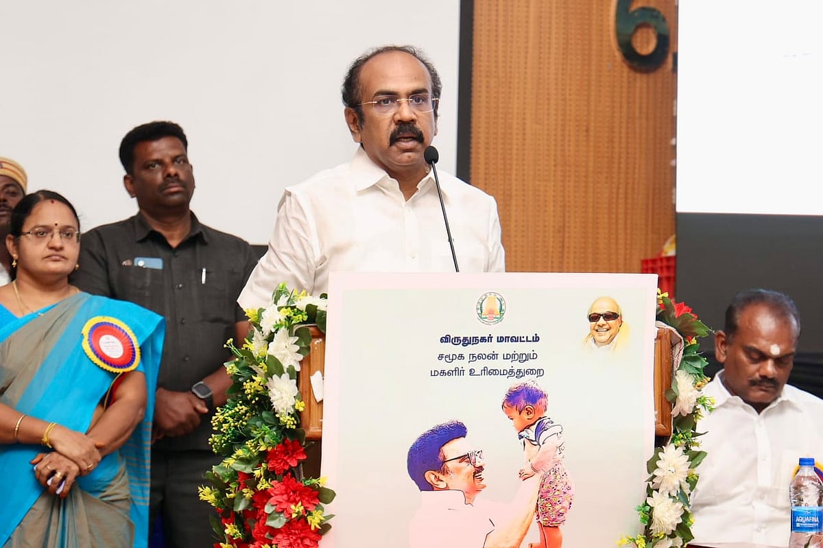 விருதுநகர் மாவட்ட ஆட்சியர் அலுவலக கூட்ட அரங்கில் நடைபெற்ற சிறுபான்மையினர் உரிமைகள் தின விழாவில் அமைச்சர்கள் தங்கம் தென்னரசு, கே. கே. எஸ். எஸ்.